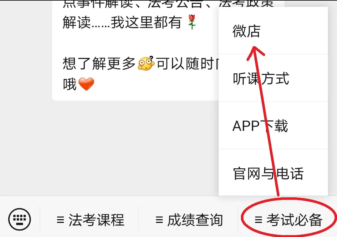 1.關注瑞達法考訂閱號,點擊菜單欄【微店】,進入瑞達成泰旗艦店。