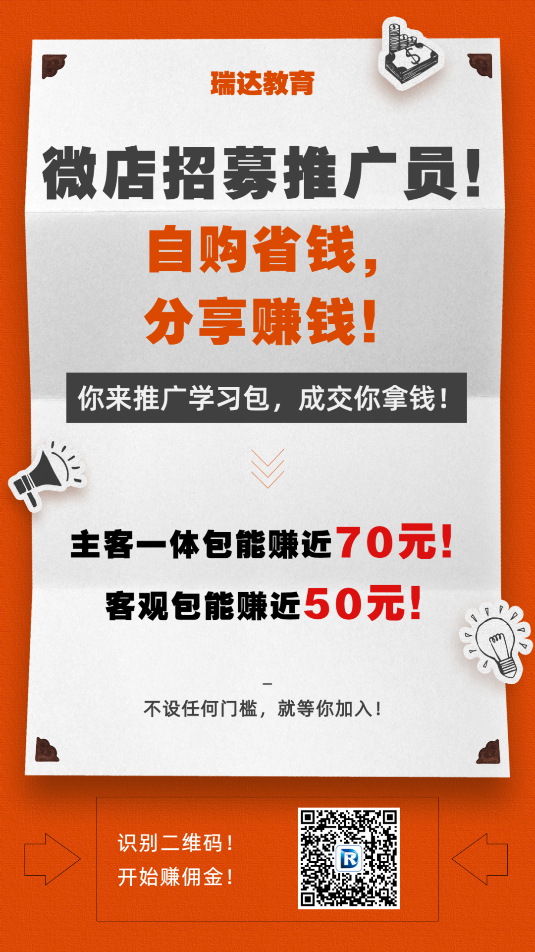 不需要身材高挑性感撩人面容姣好,只要有人通過你的推廣渠道下單一個瑞達法考學習包,你的微店賬上就能獲得50元~70元的傭金獎勵。
