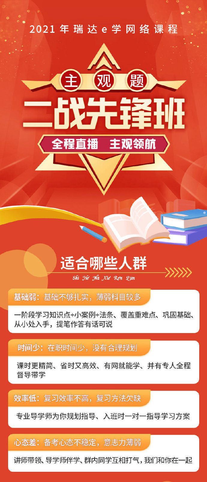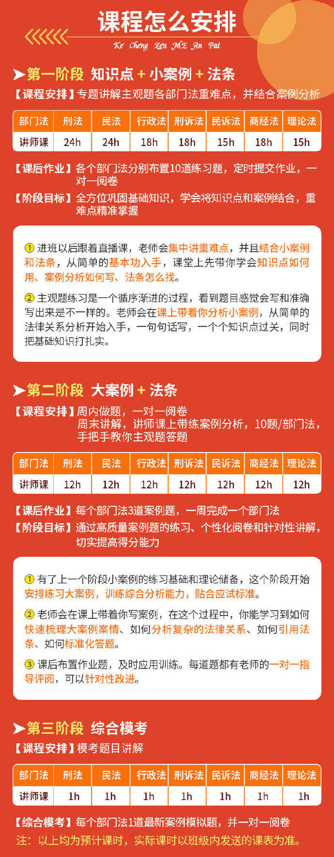 一階段學習知識點+小案例+法條、覆蓋重難點、鞏固基礎、從小處入手,提筆作答有話可說
