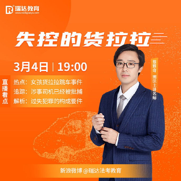 【3月4日19點】,蔡雅奇將通過瑞達法考教育直播間,從刑法角度直播進行解讀!