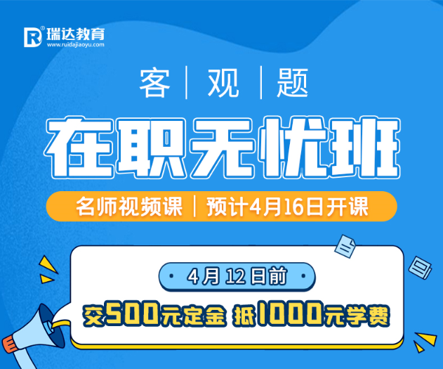 4月12日前,交500元定金,能抵1000元學(xué)費(fèi)!3大課程階段助力備考無憂,答疑、主題班會(huì)、備考指導(dǎo)、模考+分析等優(yōu)質(zhì)服務(wù)應(yīng)有盡有,是客觀題備考學(xué)員的不二之選。
