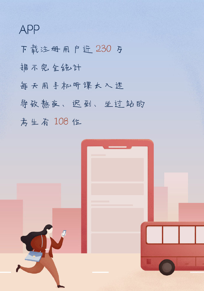 因熬夜聽(tīng)課、做題,錯(cuò)過(guò)公交車的瑞寶們,不下108人。
