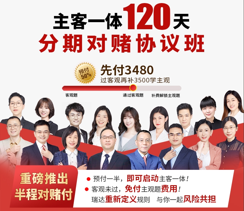 瑞達重磅推出對賭協議班!預付一半,即可啟動主客一體,客觀未過,免付主觀題費用!這不是傳統培訓班,而是一份雙向約束、風險共擔的契約: