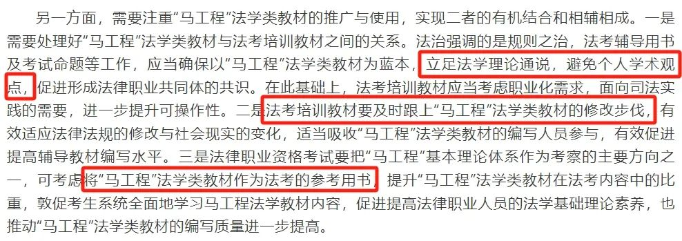 有爭議的觀點,要以馬工程所介紹的通說觀點為準,避免個人學術觀點,促進形成法律職業共同體的共識。