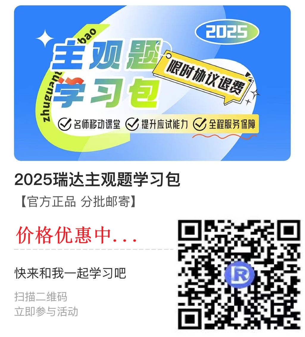 二戰(zhàn)主觀題的小伙伴們請(qǐng)注意啦!瑞達(dá)主觀題學(xué)習(xí)包可以幫助考生們一舉上岸!課程+書籍一套包全包含,你需要做的只是跟著學(xué)即可!
